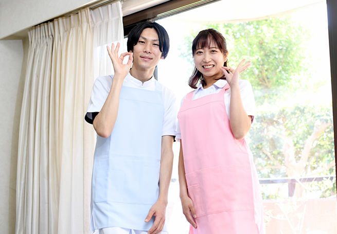 男性・女性問わず多くの職員が活躍しています。ジェンダーにとらわれず、個々の能力や意欲を大切にしています。チームワークを重視し、お互いに支え合いながら、高品質なケアを提供しています。